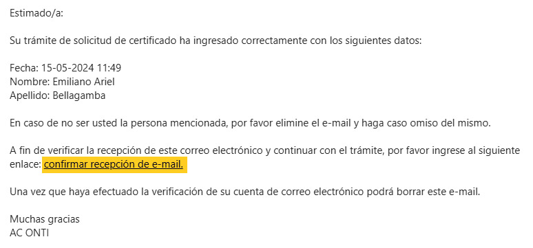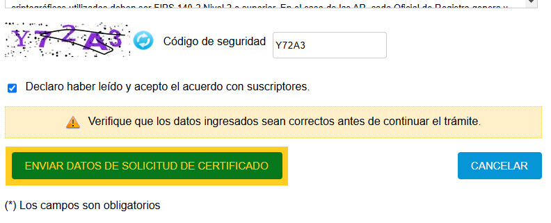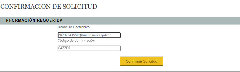 Al acceder a dicho link, el sistema carga los datos de manera automática, restando solamente hacer clic en "confirmar solicitud".