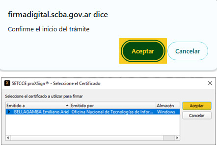 Se debe tener instalado el driver del token, los certificados raíz de la SCBA y la AC-ONTI y el complemento SETCCE proXSign (ver "configuración").