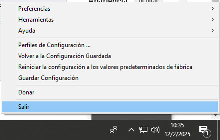 Para cerrar NVDA, se debe hacer clic sobre su ícono de la barra de herramientas de Windows y seleccionar la opción “salir”.