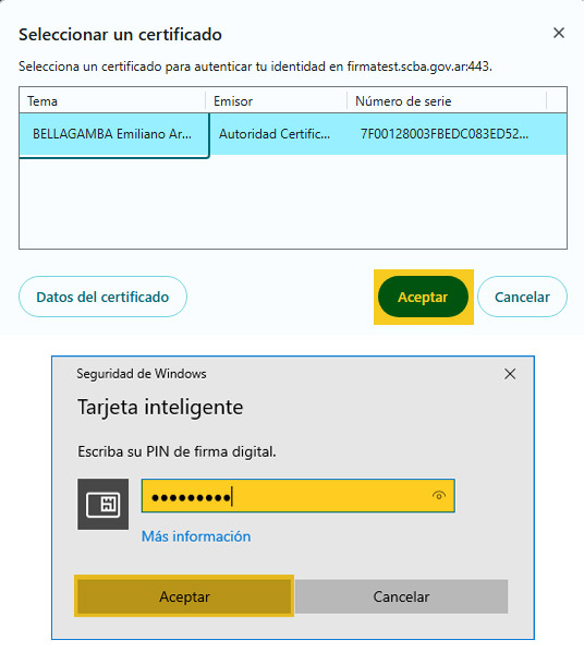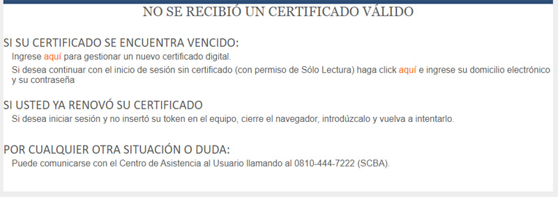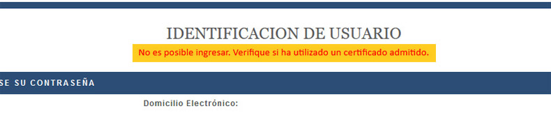 "No es posible ingresar. Verifique si ha utilizado un certificado admitido"
