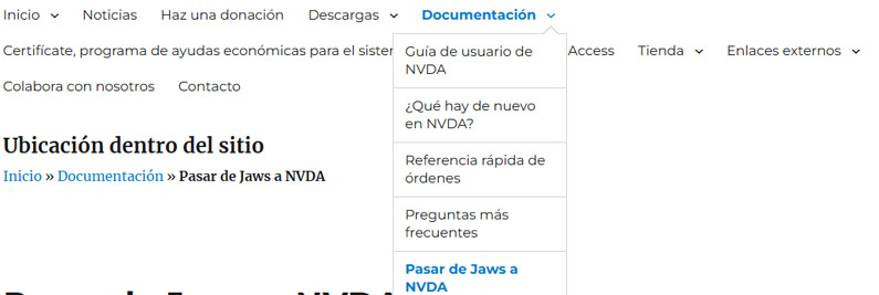 Dentro de la documentación disponible, se incluye un ítem para usuarios de Jaws que desean probar o utilizar NVDA. Se puede acceder desde el siguiente link: Pasar de Jaws a NVDA